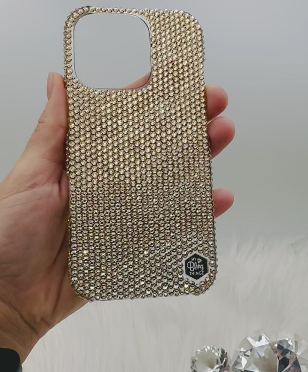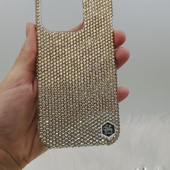 Hand-Placed Austrian Crystal Bling Phone Case for iPhone – Golden Shadow Gold Micro Crystal Design 12ss