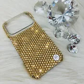Hand-Placed Austrian Crystal Bling Phone Case for iPhone – Golden Shadow Design