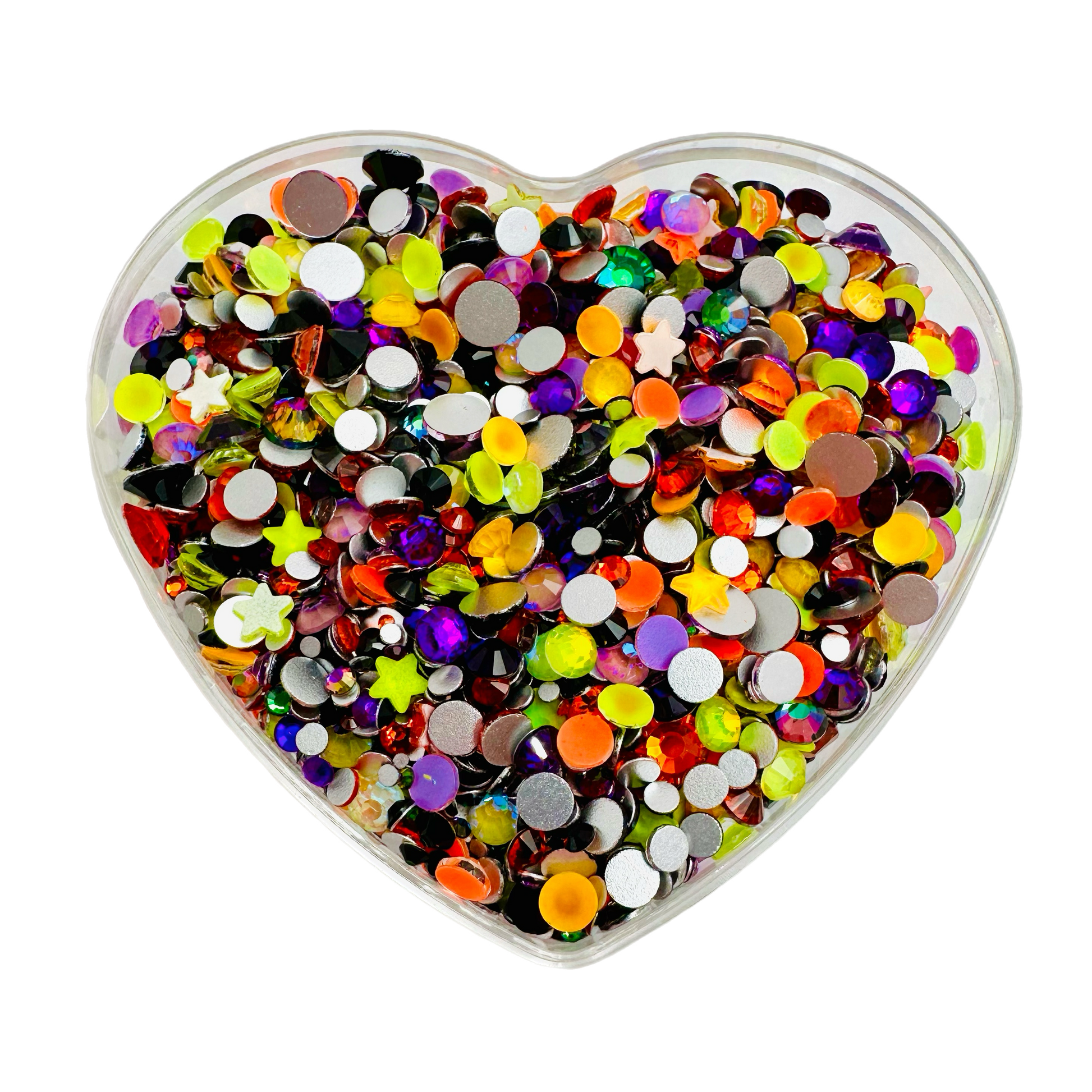 All High Quality Glass Rhinestones featuring MAGIC Green, Purple, Neons & Neon Star Shapes.Â